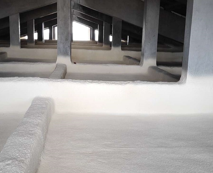 粮库的基层多数为混凝土结构或砌体结构,相对来说表面是粗糙的麻面,在常温或干燥表面喷涂聚氨酯硬泡,很易发生粘接发